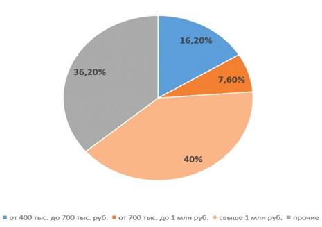 по количеству счетов соответственно). При этом вклады от 400 тыс. до 700 тыс.