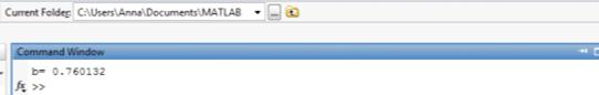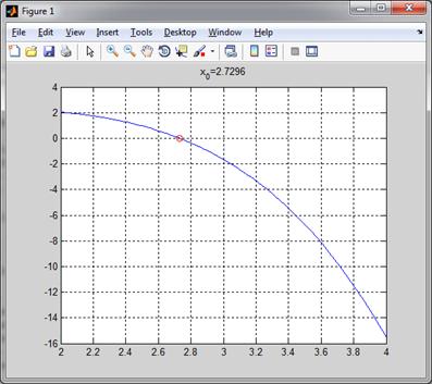 - (f(a)*(b-a))/(f(b) - f(a));f(c)*f(b)>0=c;=c;;(['Ответ x=' num2str (c,