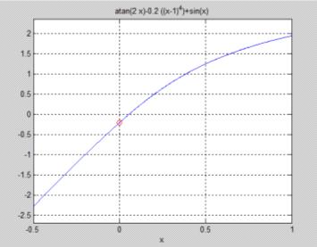 clc = inline ('atan(2*x) - 0.2*((x-1)^4)+sin(x)');%ф.inline чтобы задать