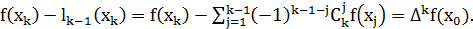 lk(xj) - lk-1(xj) = ak(x - x0) (x - x1)… (x - x k -1). (2.2)