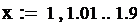 в точках, расположенных через равные интервалы по оси x, до тех пор, пока не