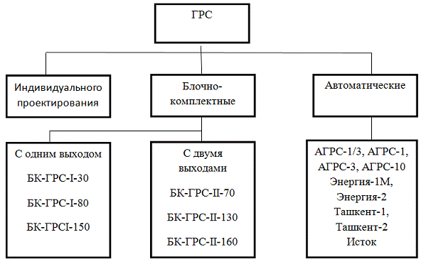 Также ГРС классифицируются по конструктивному признаку (рисунок 1). Они
