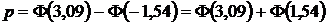 При этом мы учли нечетность функции Лапласа. Далее по таблице находим