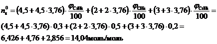 коэффициент избытка воздуха α =1, а избыток воздуха Δnв = 0. Для