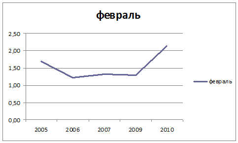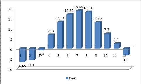 февраля по июль (от -5,4 до 26,5), а с августа по январь - уменьшение (от 26,0