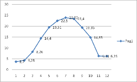 температуры показывает, что с января по август наблюдается заметный рост ЕТ (от