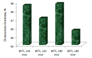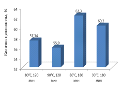 продолжительности 180 мин, 80°С. Именно при этих параметрах были получены получены высокие показатели