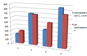 озонирования, при этом установлено, что озонирование снижает этот показатель