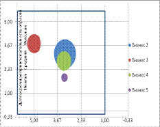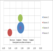 Бизнес №5 имеет среднюю конкурентоспособность, низкую привлекательность