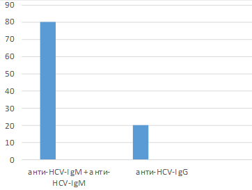 и в 30% случаев только анти-HCV-IgG.