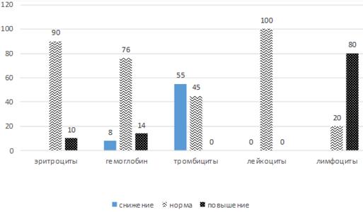 гемоглобина и лимфоцитоз, а у большей половины исследуемых выявляется