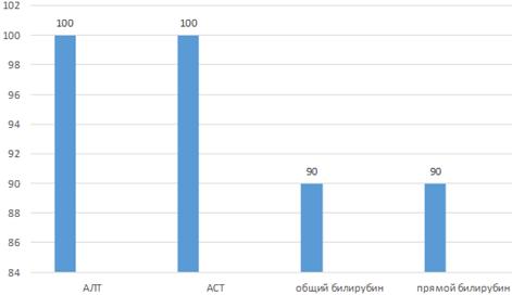 Рис. 5 - снижение показателей при печеночно-клеточной