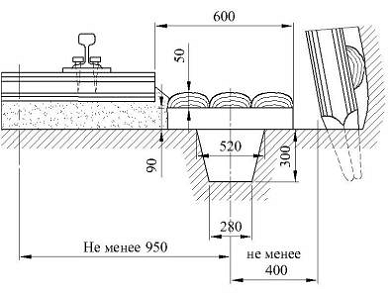 Ширина одно-путевой выработки на уровне кромки