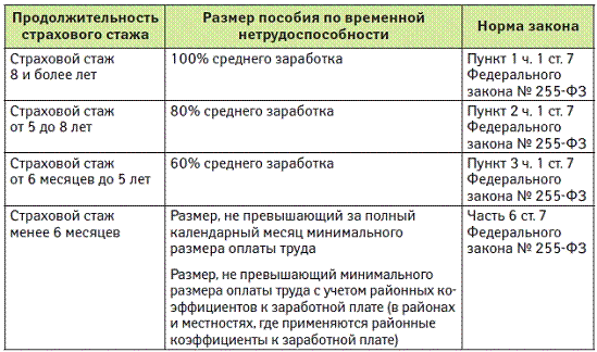нетрудоспособности от страхового стажа