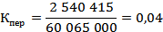 расходы) / прибыль = (60 065 - 2 540) / 36 757 = 1,57