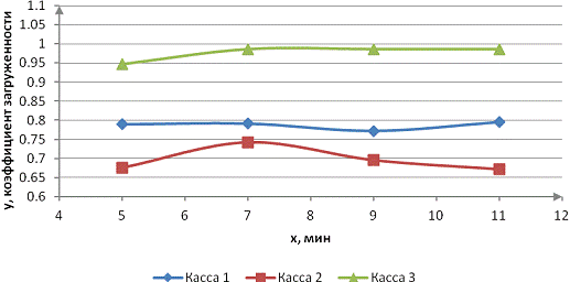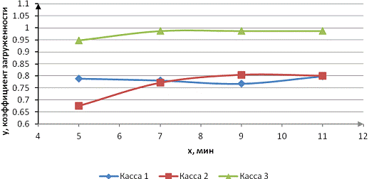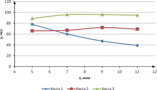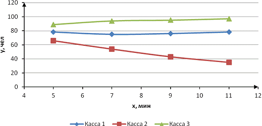кассой и чем меньше время между появлением пассажиров, тем большее количество