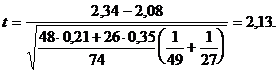 критическую область. Попадание выборочного значения t в эту область приводит к