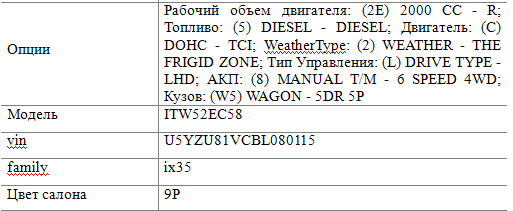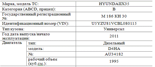 транспортного средства на примере автомобиля HYUNDAIIX35,