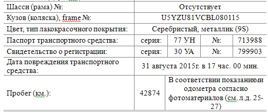 получившего механические повреждения при ДТП 31 августа 2015г. составляет: