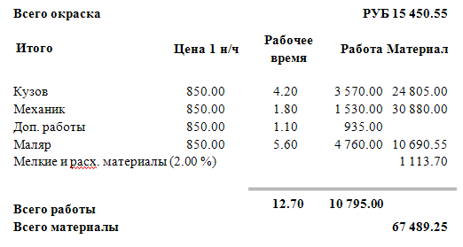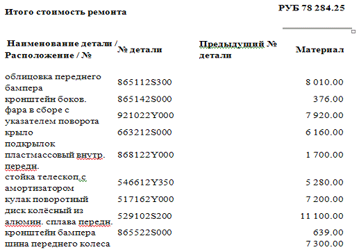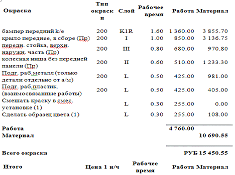 использовался Автоматизированный программный комплекс «Euro TaxRepair Estimate»