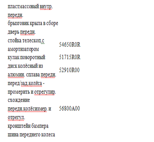 для установления стоимости ремонта поврежденных транспортных средств, данные