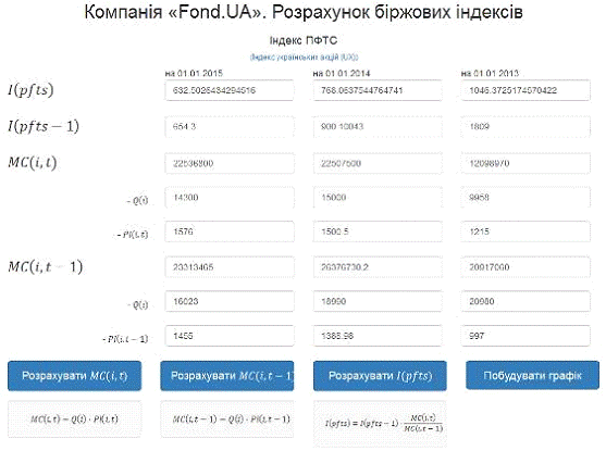 та програмами процесу розрахунку основних біржових показників виявляється в: