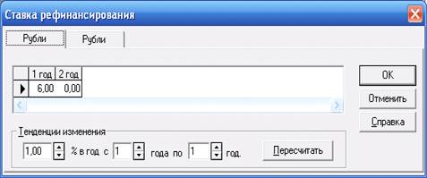 Введем величину ставки рефинансирования рубля, равную 6% в год.