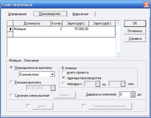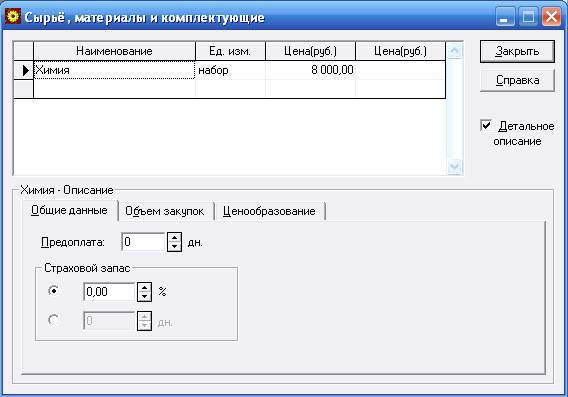 Введем материалы и зарплату сотрудникам.
