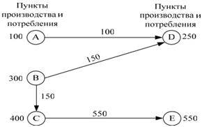 оставшиеся 150 ед. идут на потребление в пункт E. Таким образом, используя