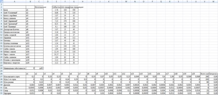 на примере хлебобулочного завода с помощью программы Microsoft Excel 2007.