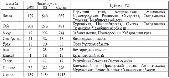 В 2010 г. на реках Северо-Западного, Северо-Кавказского и Сибирского