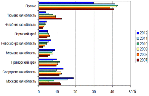 Урала; многие густозаселенные районы Европейской территории России (ЕТР)