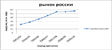 переход спроса в более низкий ценовой сегмент, в 2009 г. рынок вырос примерно