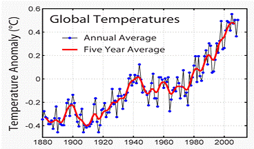 С начала XX в. средняя температура воздуха возросла на 0,74 °C, примерно