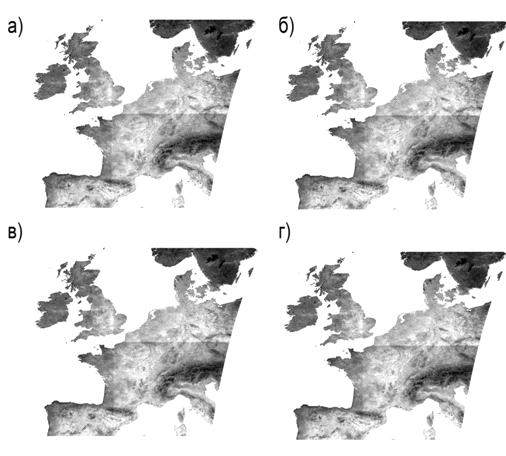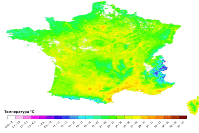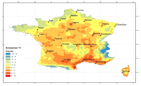 аномалий по данным спутника MODIS/Terra, построена карта изоаномал Франции,