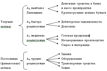 их ликвидности и пассивов предприятия по степени срочности их погашения. Также