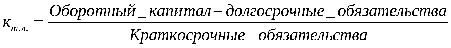 Коэффициент достаточности денежных средств, ниже единицы, то предприятие