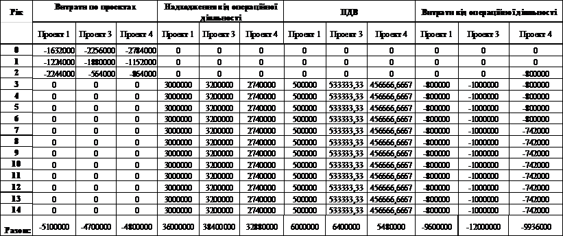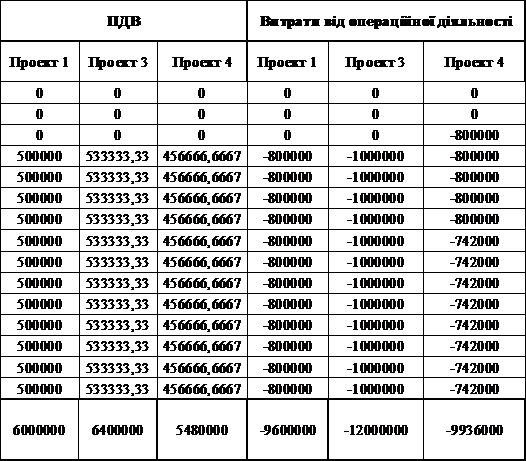 будівництво чи виробництво. Для аналізу нам дано 6 проектів: