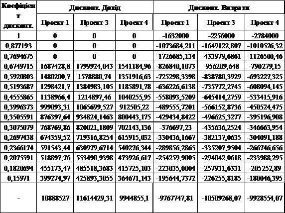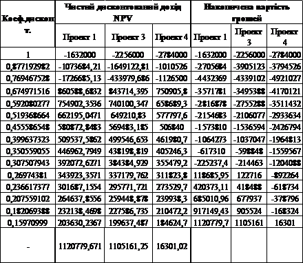 грошей, розраховані показники економічної ефективності: чистий дисконтований