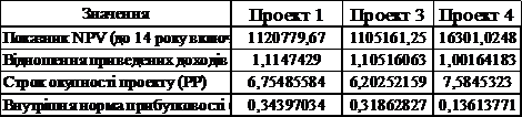 дохід, індекс прибутковості, внутрішню норму прибутковості, строк окупності.