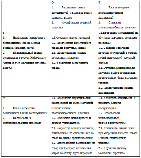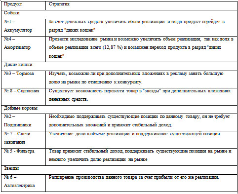 автозапчастей; 3. Модификация товарной политики.