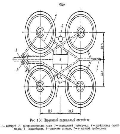 первичные и вторичный отстойники;