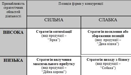 становища стратегічних господарських підрозділів фірми та стратегій їх
