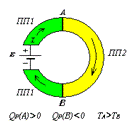 де, Па та Пв - коефіцієнти Пельтьє матеріалів A і B, відповідно.