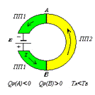 охолоджується, а інша (гаряча) нагрівається. Якщо з гарячою боку ТЕМ