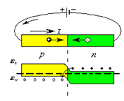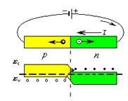 електронів, що рухаються із напівпровідника в металічні електроди (і навпаки)