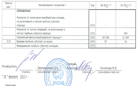 состояния ОАО «Элсиб» по данным бухгалтерской отчетности
