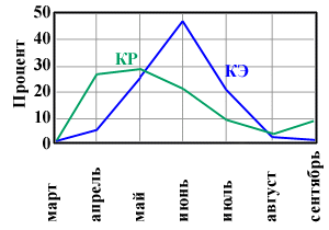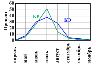 Рис.2. Сравнительная динамика сезонности заболеваний КР