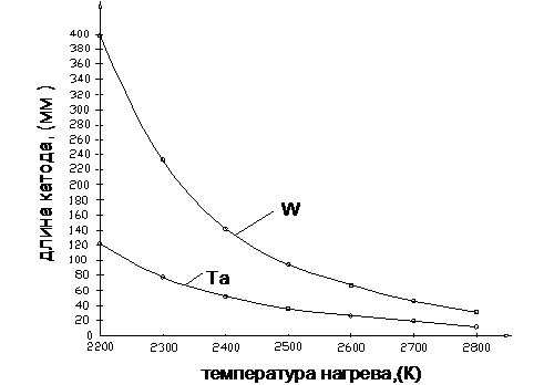 расчет и сравнение проволочных прямонакальных катодов из фольфрама и тантала. В