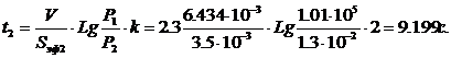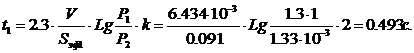 Так как в данном случае два насоса, то следует подсчитать время откачки от